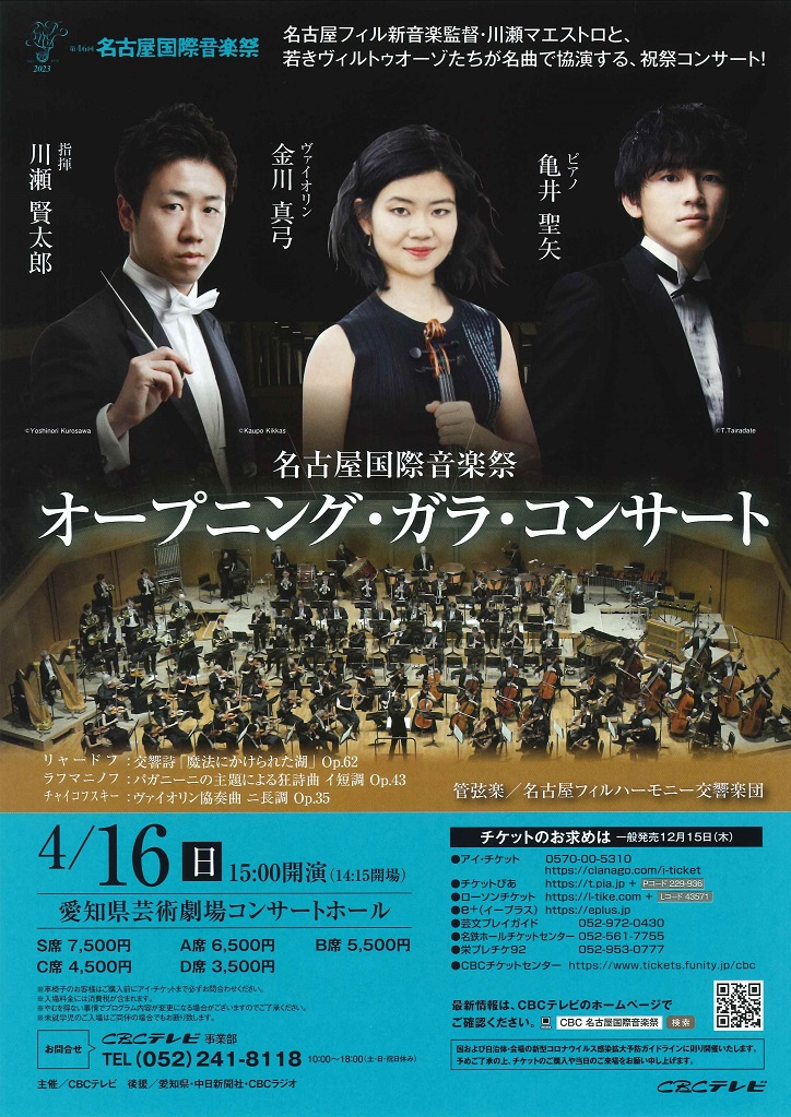 お問い合わせ先: 中日新聞コンサートデスク Tel. 052-678-5323 主催:トヨタ自動車(株) 共催:中日新聞社,名古屋フィルハーモニー交響楽団 【料金】S席:¥9,500 A席:¥7,500 B席:¥5,500 ハッピーシート:¥2,000* *22歳以下対象 |