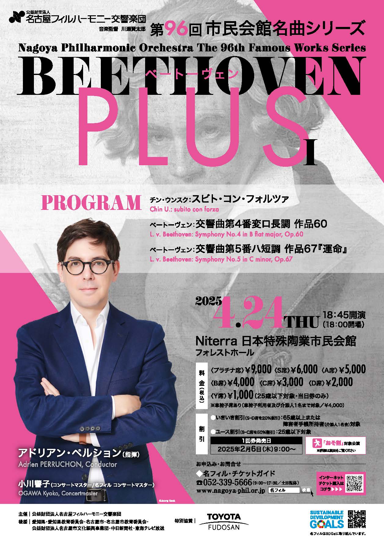 欧米から熱い視線を集めるフランスの指揮者アドリアン・ペルションが名フィル初登場。フランス放送フィルハーモニー管弦楽団の首席ティンパニ奏者を務めたペルションから生み出されるフランス流の交響曲に、ベートーヴェン生誕250年に作曲、ベートーヴェンの様々な作品のフレーズが浮かんでは消えるチン・ウンスクの作品を融合させたプログラムです。