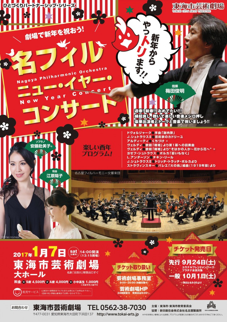 S: ¥6,200 A: ¥5,200 B: ¥4,100 C: ¥3,100 D: ¥2,100 Y: ¥1,000 (Only for 24 years old or less) <How to order tickets> Online: https://yyk1.ka-ruku.com/nagoya-phil-t/(Japanese Only) E-mail: Please send e-mail (ticketguide@nagoya-phil.or.jp) with following details. – Concert Title, Ticket Section & Quantity – First & Last Name – Zip Code & Address – Phone Number Notice: Tickets for our concerts can be picked up at the venue on the day of the performance.