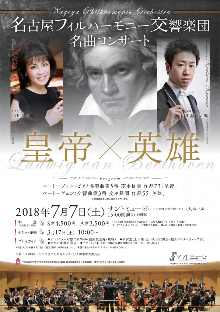 L. v. Beethoven Piano Concerto No.5 in E flat major, Op.73 “Emperor” L. v. Beethoven Symphony No.3 in E flat major, Op.55 “Eroica” S: ¥4,500 A: ¥3,500 |