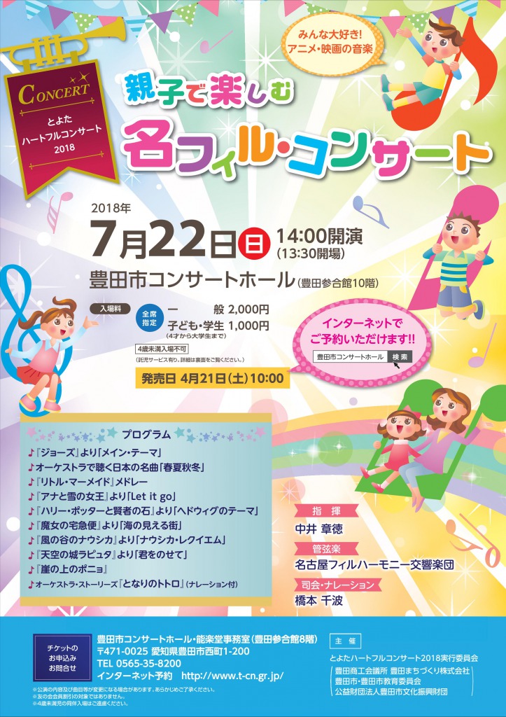 Platinum: ¥7,700 S: ¥5,100 A: ¥4,100 B: ¥3,100 C: ¥2,100 D: ¥1,500 Y: ¥1,000 (Only for 25 years old or less) <How to order tickets> Online: https://yyk1.ka-ruku.com/nagoya-phil-t/(Japanese Only) E-mail: Please send e-mail (ticketguide@nagoya-phil.or.jp) with following details. – Concert Title, Ticket Section & Quantity – First & Last Name – Zip Code & Address – Phone Number Notice: Tickets for our concerts can be picked up at the venue on the day of the performance. |