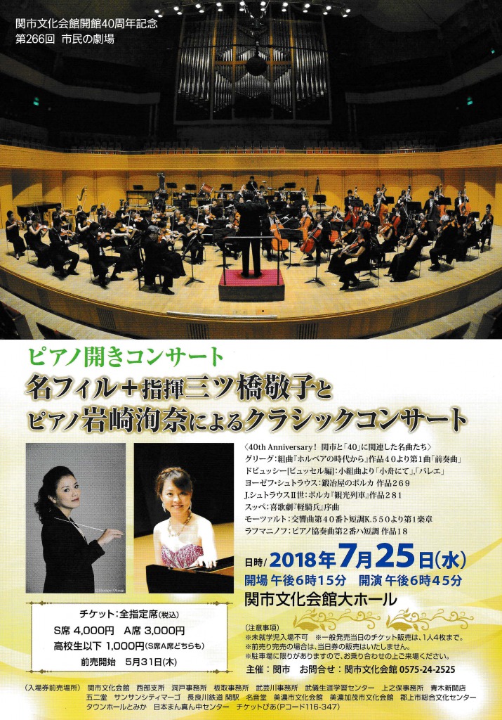 W. A. Mozart 1st mov. from Symphony No.40 in G minor, K.550 S. Rachmaninov Piano Concerto No.2 in C minor, Op.18 etc. S: ¥4,000 A: ¥3,000 |