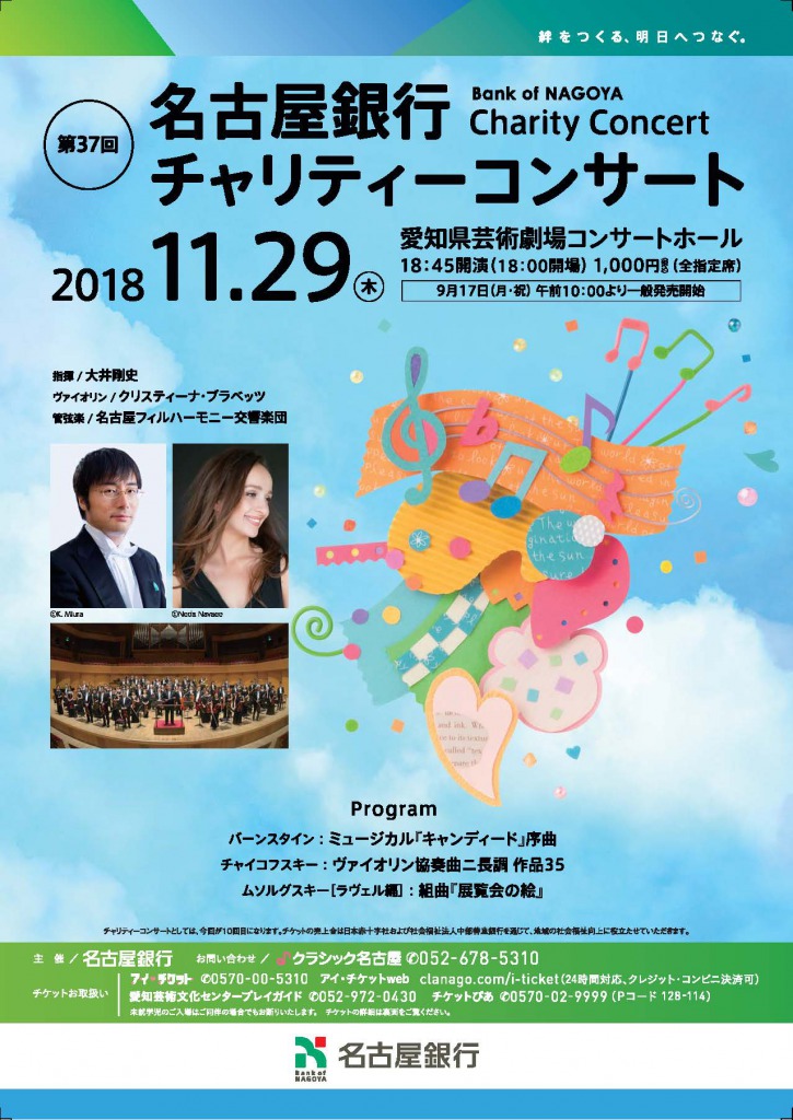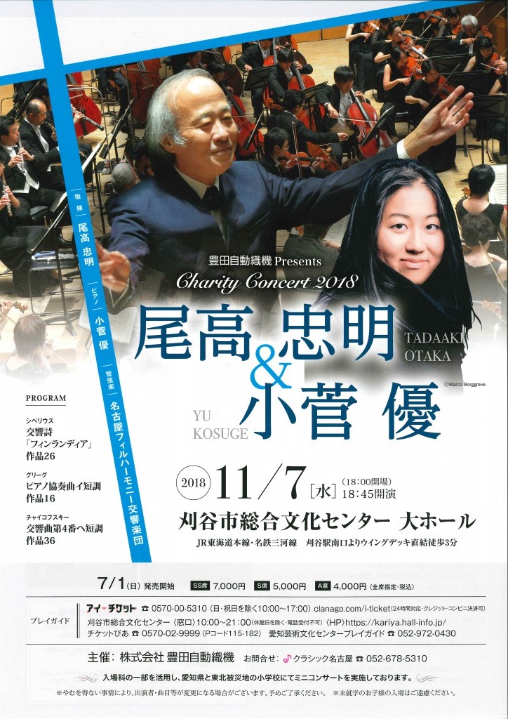 S: ¥5,100 A: ¥3,600 Y: ¥1,000 (Only for 25 years old or less) <How to order tickets> Online: https://yyk1.ka-ruku.com/nagoya-phil-t/ (Japanese Only) E-mail: Please send e-mail (ticketguide@nagoya-phil.or.jp) with following details. – Concert Title, Ticket Section & Quantity – First & Last Name – Zip Code & Address – Phone Number Notice: Tickets for our concerts can be picked up at the venue on the day of the performance. |