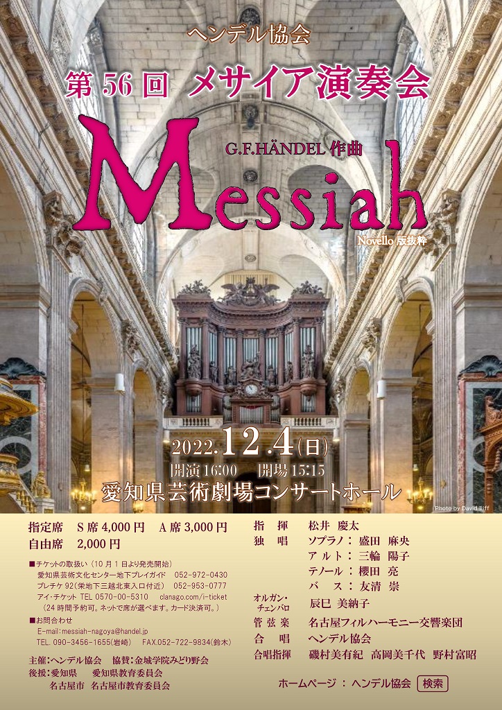 G. F. Händel: Messiah, HWV.56 S: ¥4,000 ~ Open Seating: ¥2,000 |