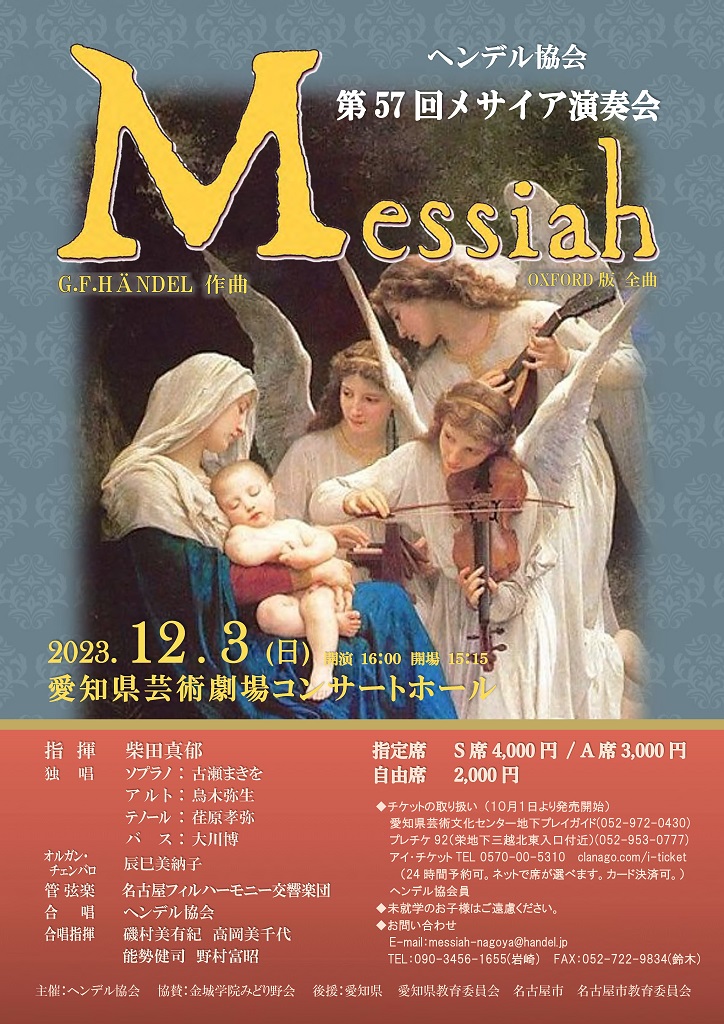 G. F. Händel: Messiah, HWV.56 S: ¥4,000 ~ Open Seating: ¥2,000 |
