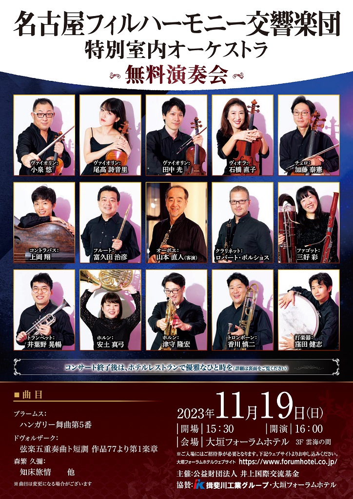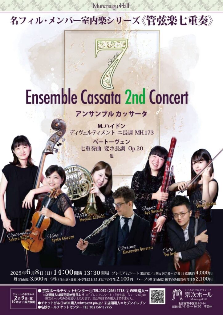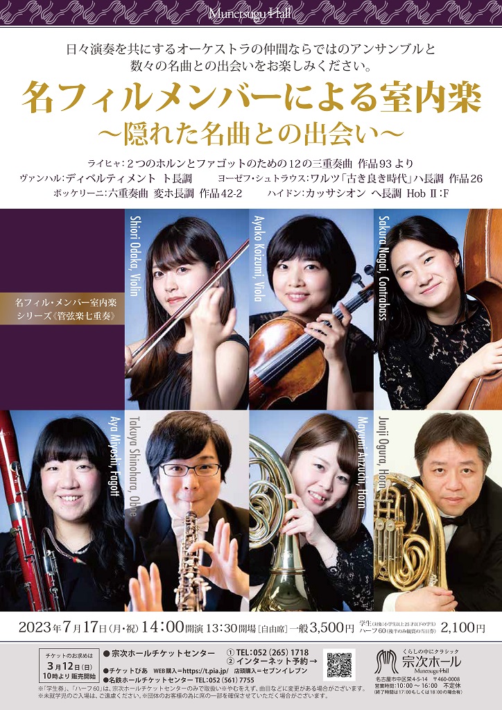 矢口十詩子,井上絹代(ヴァイオリン) 依田郁子(ヴィオラ) 幸田有哉(チェロ) 佐渡谷綾子(コントラバス) 山本直人(オーボエ) 井上京(クラリネット) |