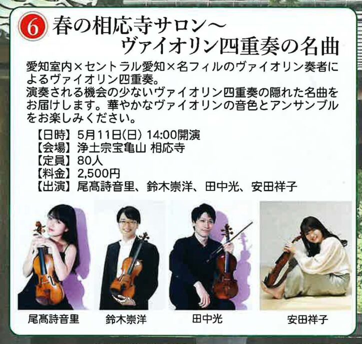 | 出演 | 森岡聡,瀬木理央(ヴァイオリン) 小泉理子(ヴィオラ) 永野紗佑里(チェロ) |