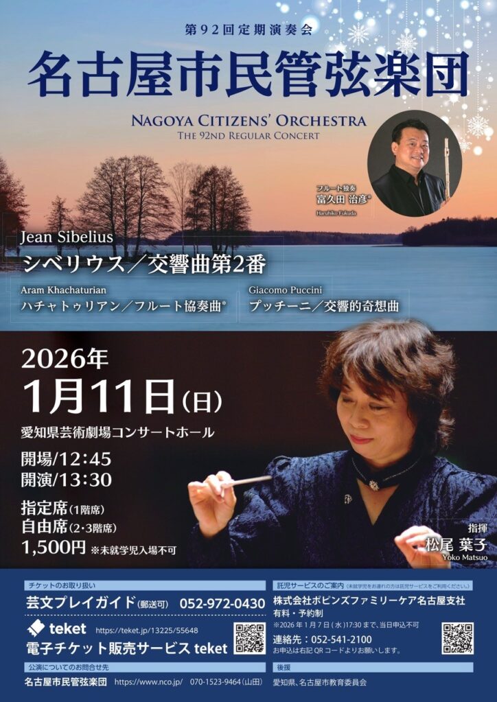 | プログラム | シベリウス:交響曲第2番ニ長調 作品43 ハチャトゥリアン:フルート協奏曲* プッチーニ:交響的奇想曲 |