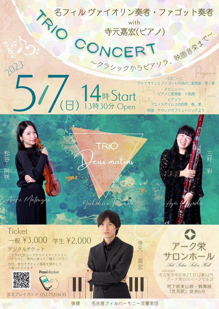 | 出演 | 矢口十詩子(ヴァイオリン) 山本直人(オーボエ) 泉沢果那(ヴォーカル) 平山晶子(ピアノ) |